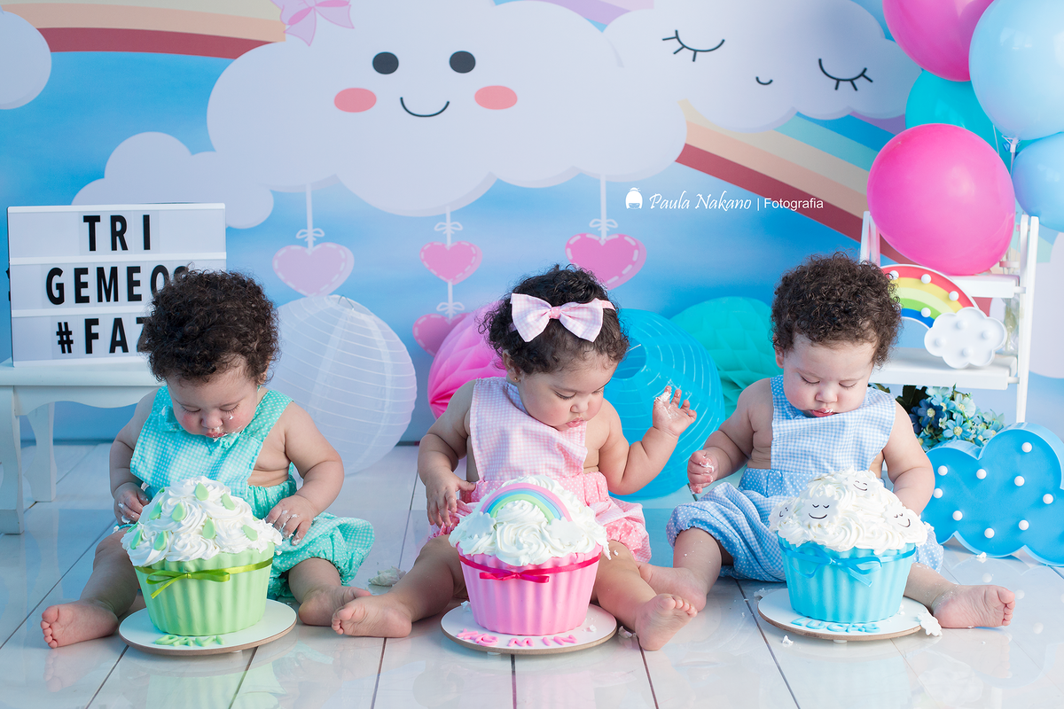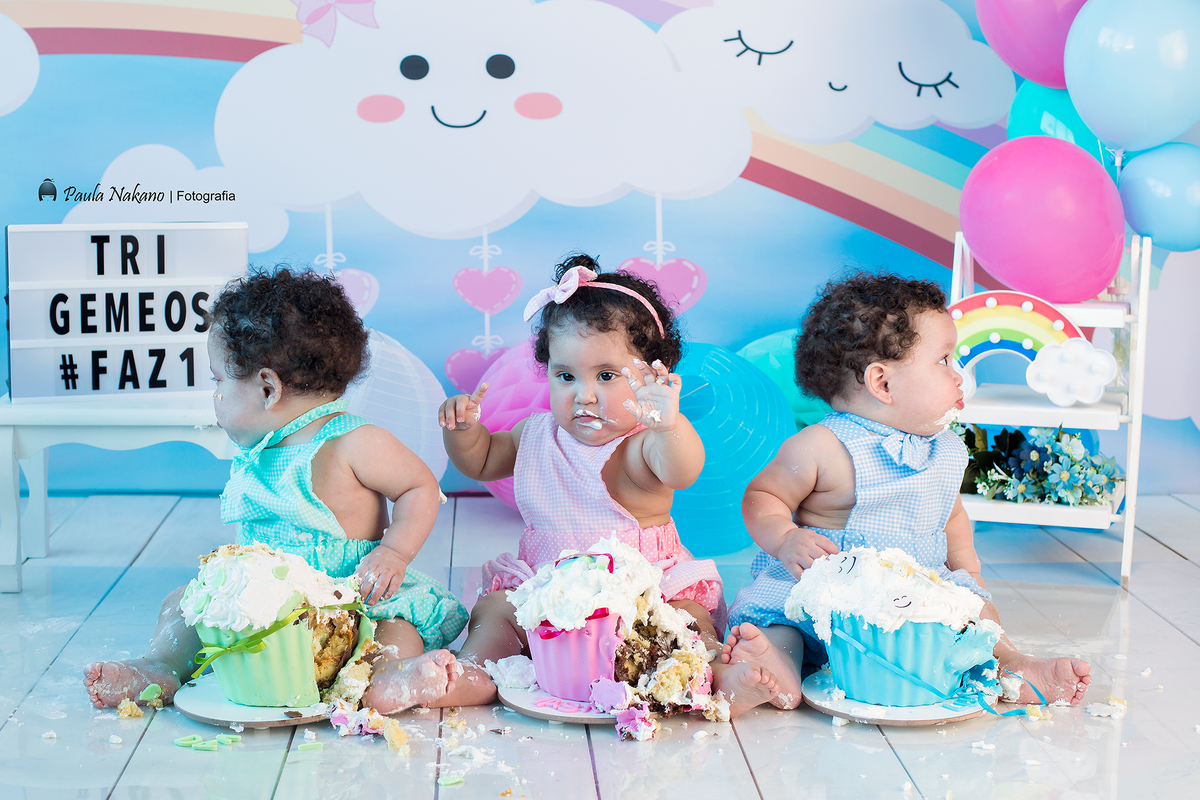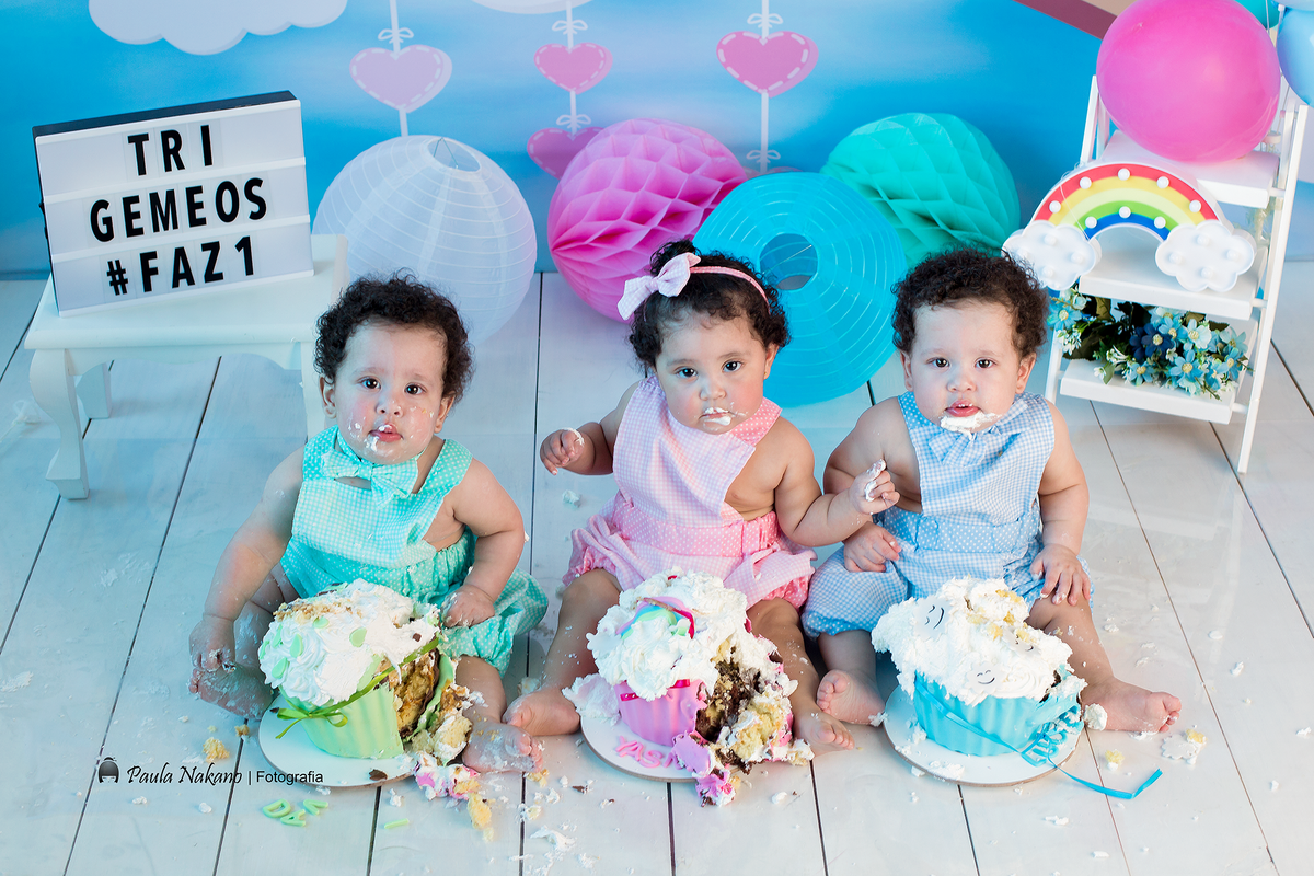 Davi, Lucas e Yasmin! Como não se apaixonar por esse trio? Eles são incríveis!!! Já imaginaram como é fazer fotos de 3 bebês ao mesmo tempo? Loucura, loucura, loucura! kkkk O Smash the Cake foi delicioso, Yasmin como sempre deu um show a parte!!!